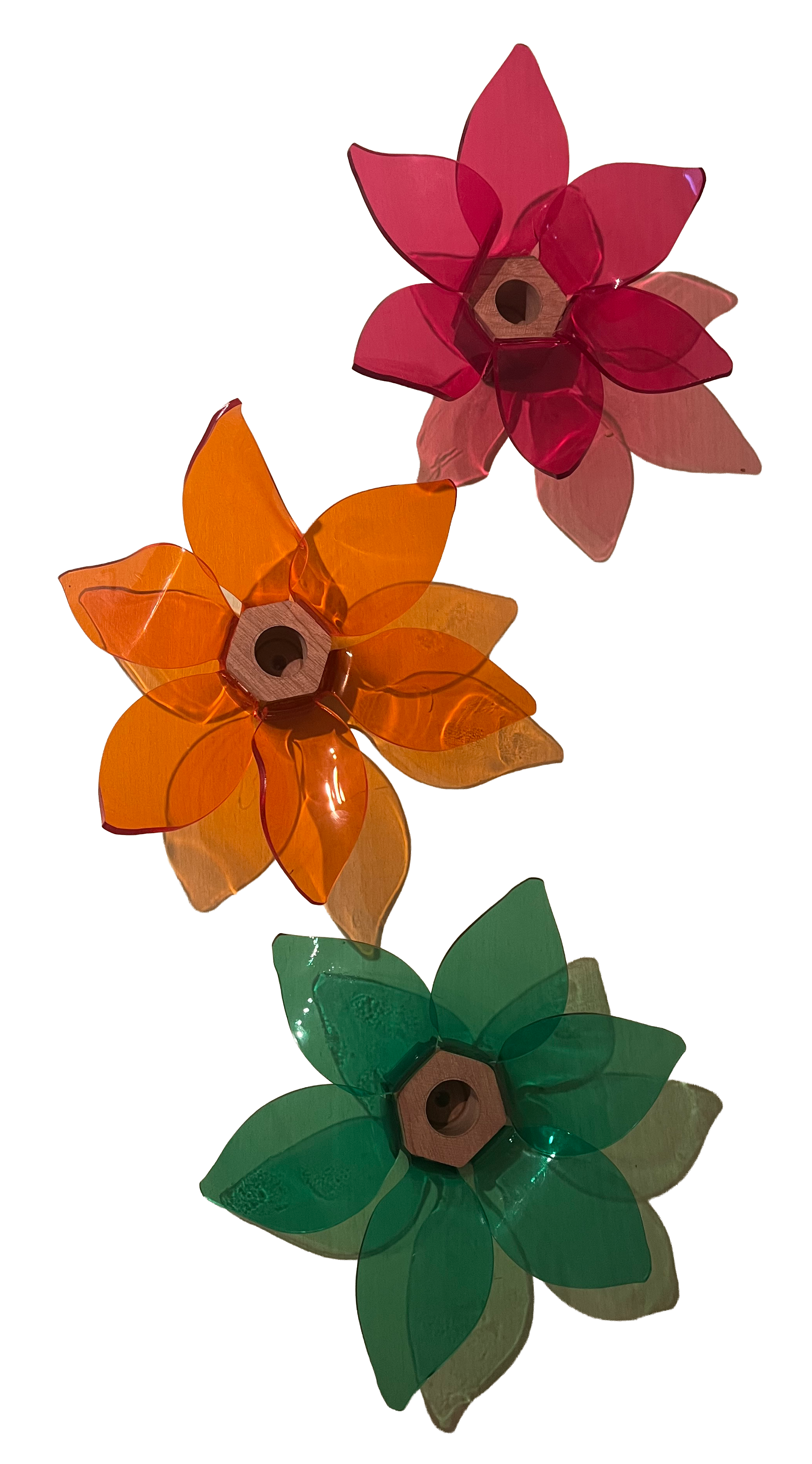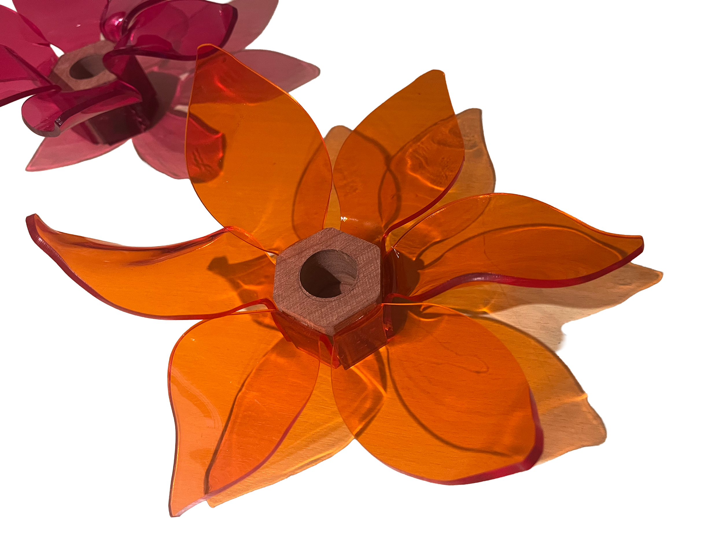 Candle holders (wood and moulded plexiglass)