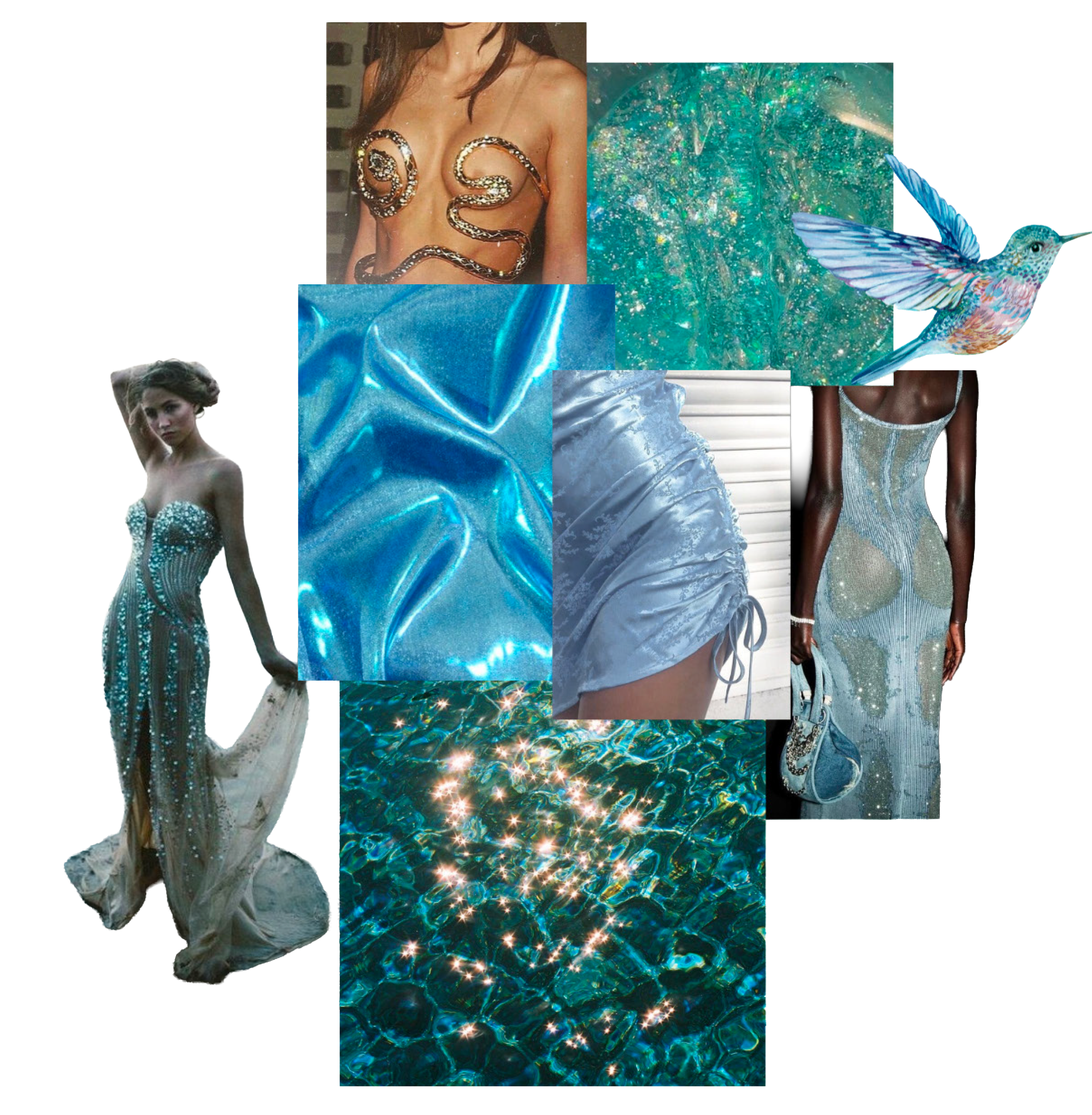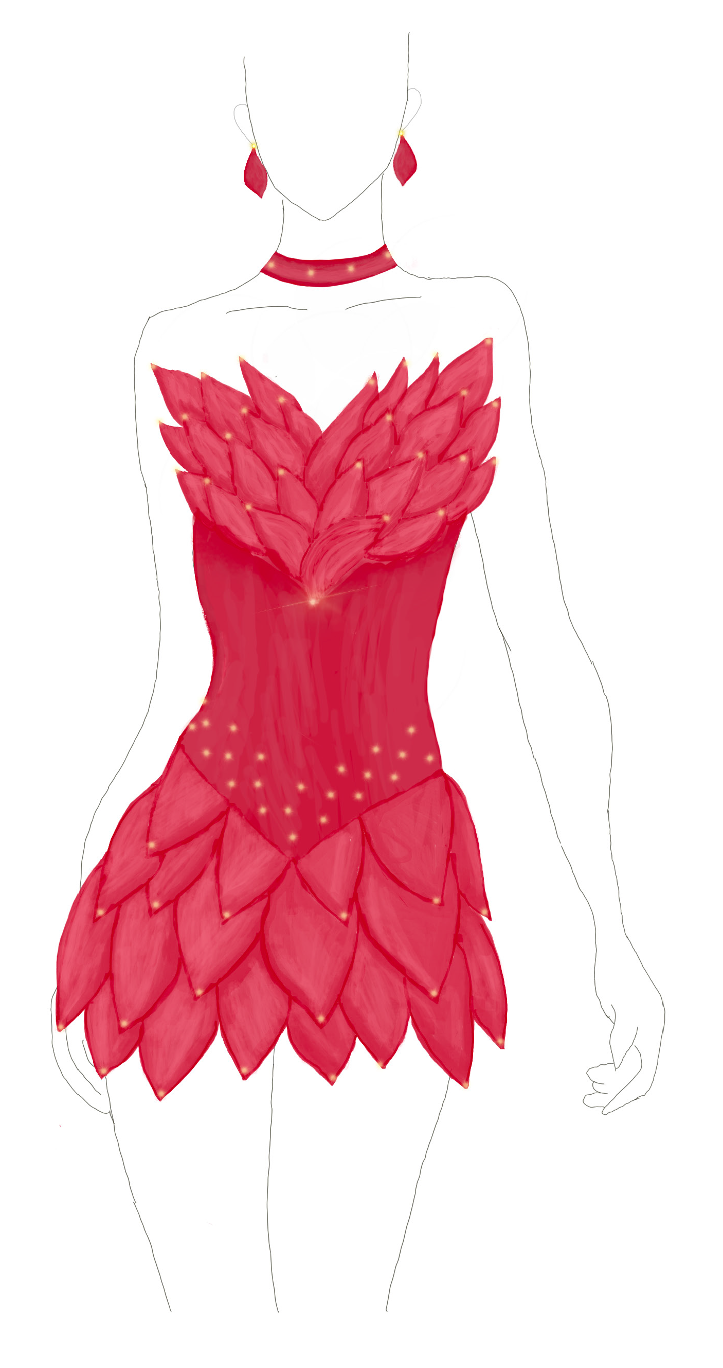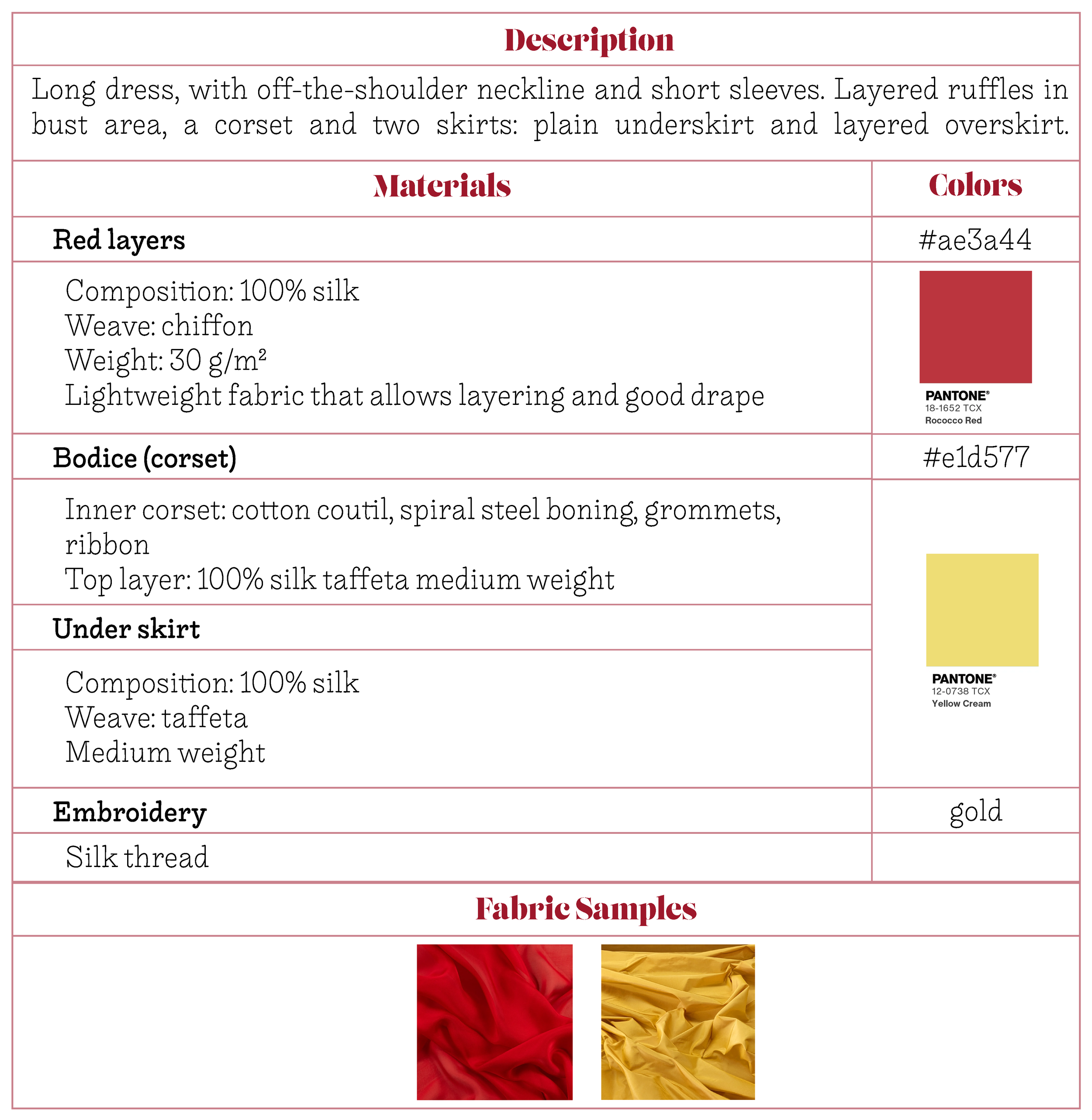 Main inspirations are typical birds and flowers, matching with colours red and blue (representing the national flag). The fabric and style direction focuses mainly on silk fibers and light fabrics like chiffon. These will help achieve a soft look reminiscent of feathers and petals, also using layers and draping to create smooth flower-like designs.